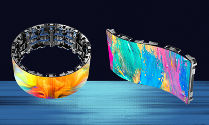 波浪形室内裸眼3D屏,由联建光电三款租赁平台产品,常规租赁屏Pilot Pro+90°拐角E-Corner+柔性租赁E-Swan混拼而成,创意造型搭配定制裸眼3D视频,显示效果极佳,画面栩栩如生,为裸眼3D解决方案提供新思路。