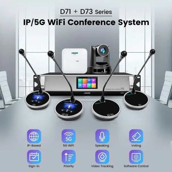 D71+D73系列IP/5G WiFi会议系统新引入了一款采用圆形底座的先进会议单元,利用尖端的IP和5G WiFi技术,为现代会议体验带来变革。