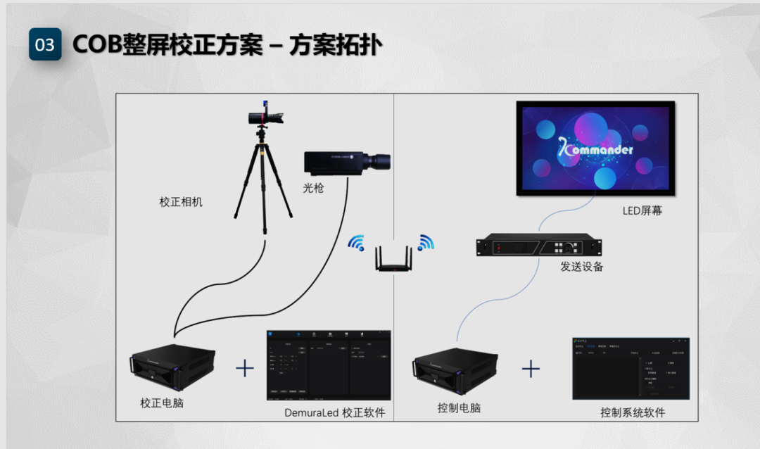 通过在使用终端对COB屏幕的亮色度进行测量和校正,可显著提升COB显示屏的亮色度一致性,从而改善图像质量。定制工业级相机,对比传统方案,可显著提升校正速度。采集及校正精准,校正后亮色度效果更接近目标值。