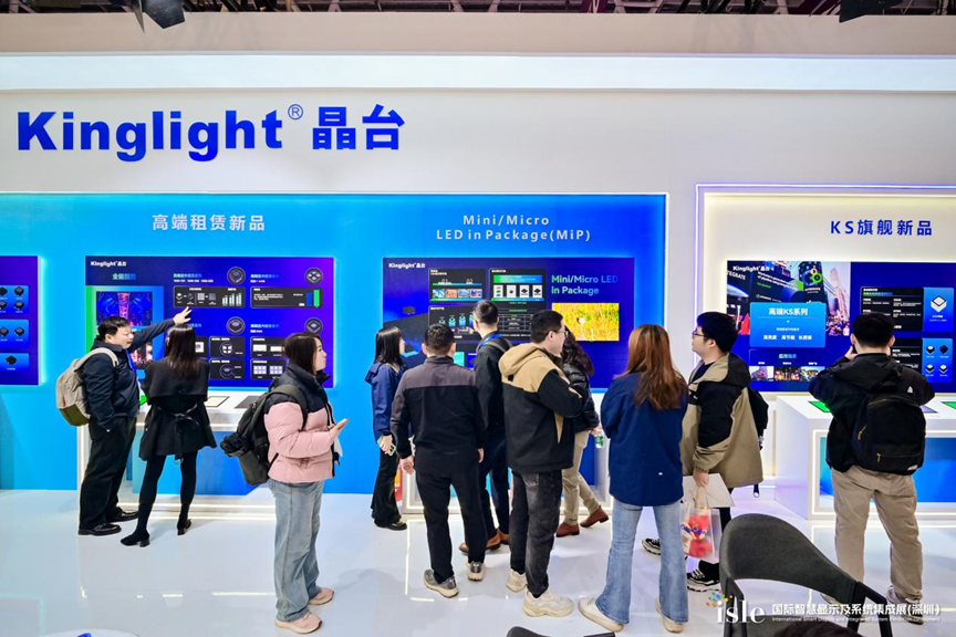 在isle展会上,Kinglight晶台携四大创新LED显示器件产品矩阵亮相,推出TF2727陶瓷LED,首创无机陶瓷封装工艺,亮度达10000nit,提供十年质保,适用于体育赛事等高端固装场景;带来黑晶2424、QFN1212等四大租赁新品,在推力、对比度等方面实现突破,满足舞台演绎、品牌展示等租赁需求;还推出户外超高清MiP1010新品,实现户外P1.25—P2的超高清显示 ,并展示影院级P3系列及虚拟XR/VP产品,助力影视制作。