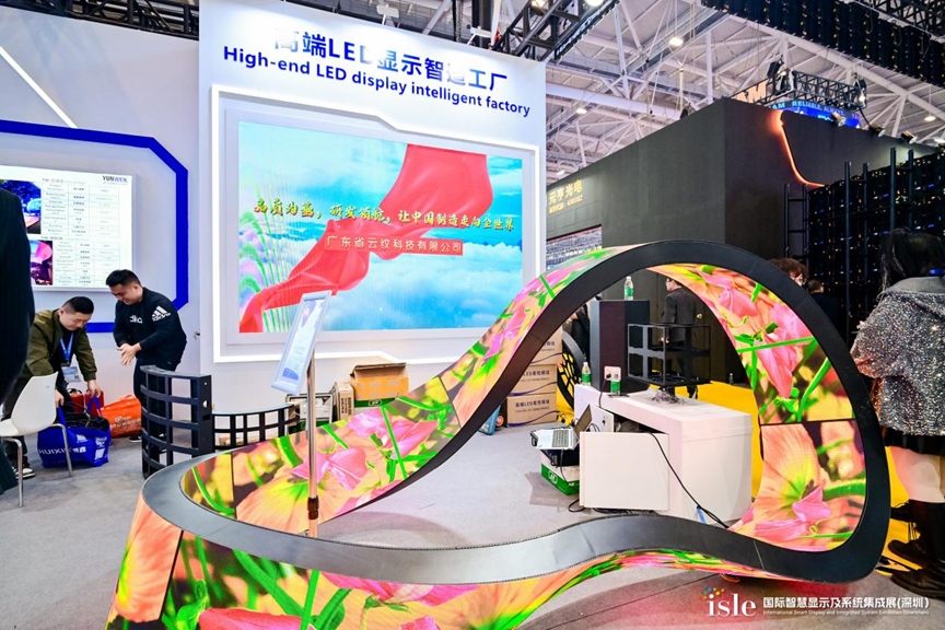 云纹科技携莫比乌斯环柔性LED显示屏、LED超高清柔性显示屏、球形屏、柔性波浪屏、飘带屏等创新产品亮相展会,其设计独特,能实现弯曲、折叠,画面细腻、色彩鲜艳、亮度均匀,还提供适用于商业地产、舞台舞美、展览展示、广告传媒、实体商铺显示等领域的定制化解决方案 。