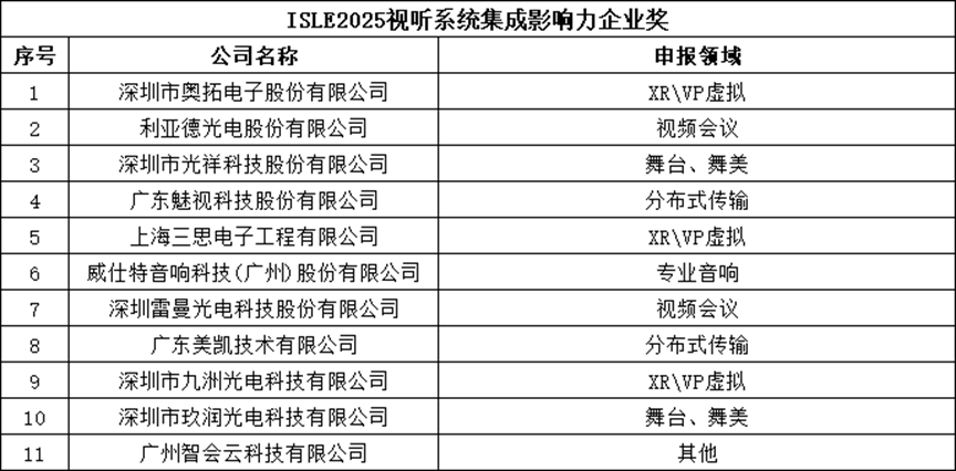 下面请跟随小的脚步,一起先来了解“ISLE2025-视听系统集成影响力企业奖”都有哪些企业的产品获奖吧。