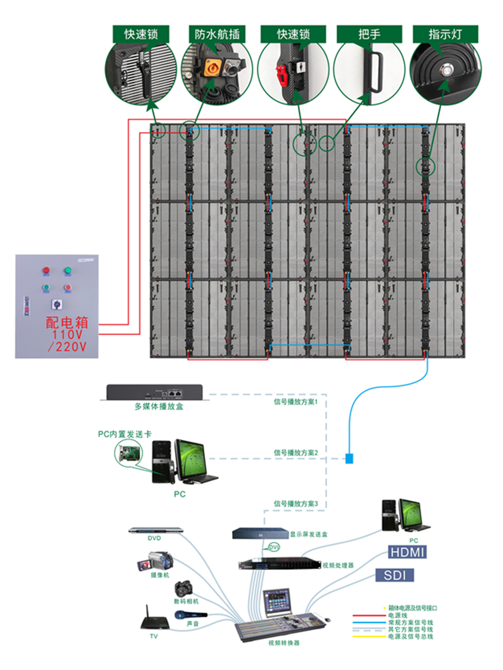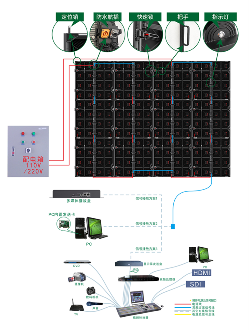 4. 全场景适配:支持座装/吊装等安装方式,专注为舞台演艺、商务会议、展览发布等领域提供可视化整体解决方案。