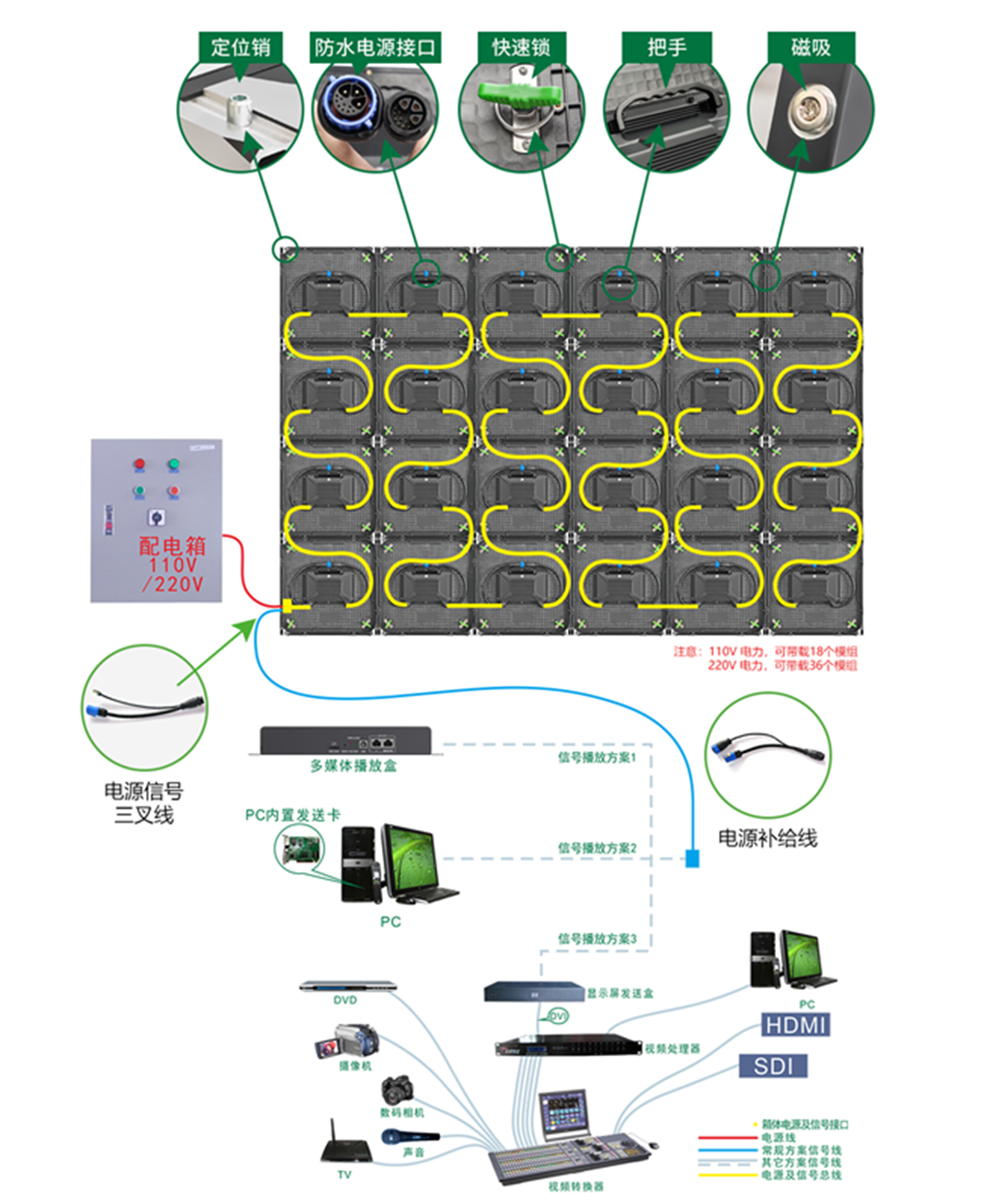 2. 磁吸创新设计:模组支持前后维护,箱体精准磁吸定位,租赁场景高效拆装;