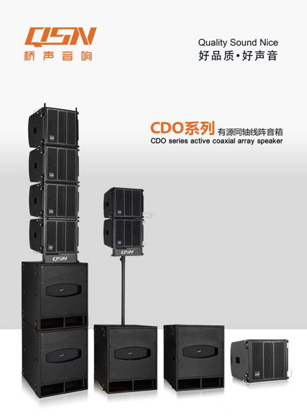 ①CDO10是一款小体积大声压10寸同轴线阵音箱通与DSP大功率三通道有源低音炮组成中小型自适应演出系统,通过一只有源低音通过外置分频设计可带动4只全频外加一只无源低音,并内置室外,室内,会议,多功能厅等多种模式供用户调用,只需配置一张调音台即可进行演出扩声。