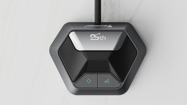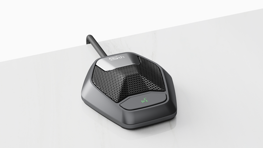 配置超心型拾音器,采用14毫米直径镀金电容式咪芯,拾音距离可达130cm简洁时尚,精致,高贵,是高端会议场合的理想设备