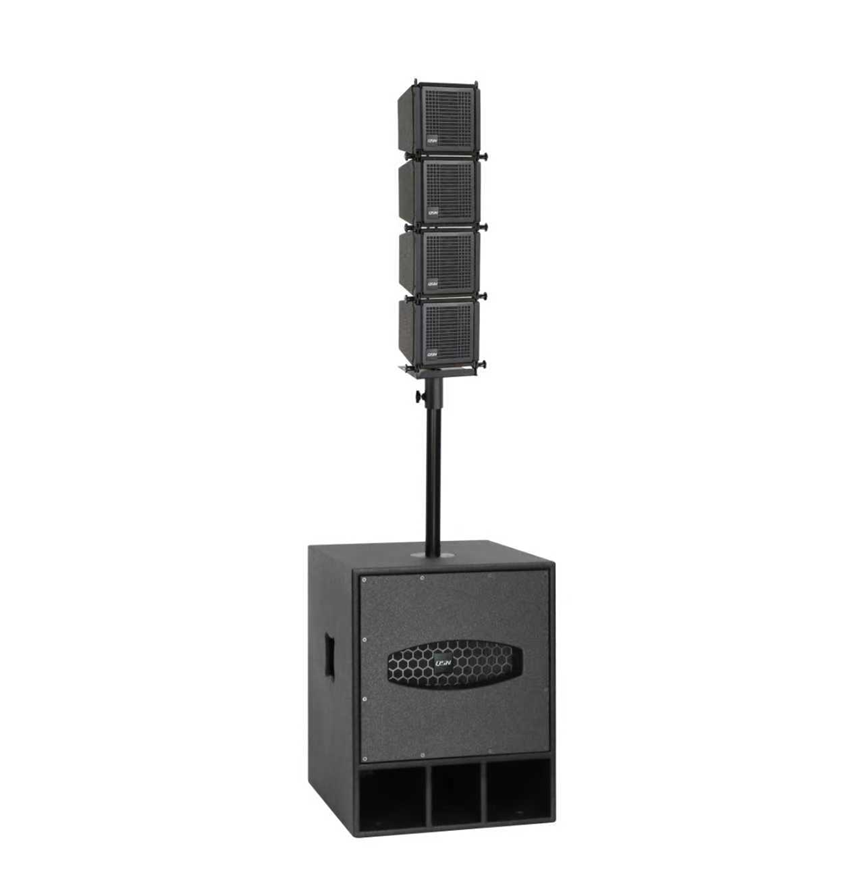 ①N1是一款小尺寸(手掌大小)、大声压、同轴物理结构、高保真的无源线阵列扩声系统,不但可以组成线性阵列还可以单独点声源使用(配备专用挂架),适用于小型报告厅/会议室/高档餐吧/音乐小酒馆等扩声场所;N1含3只1"无号角垂直排列而成高灵敏度丝膜高音和1只4.5"高效能钕磁中音单元,而且高音喇叭通过特殊模具进行组装在4.5寸中低音前面形成同轴式阵列覆盖。由于众多单元排列紧密,单只音箱已经是一个线阵列,通过专门调校的分频系统精准的相位曲线让声音平衡而有韵味。同时N1产品由于其较小的尺寸,较轻的重量,达到了储存省地、运输省车、安装省人,易于融入使用环境等特点。4只N1与一只有源带CV15LAP带FIR组装形成一套完整的扩声系统,出厂前精准的DSP调试以及通过FIR优化的平滑相位曲线可适用于各种流动性小型演出/音乐餐吧/会议室等。扬声器单元紧凑排列,以改善垂直和水平方向的声频扩散,正面反射减少,水平声音性能非常稳定、平滑;专用精致小巧又易于安装的吊挂件可迅速把整套系统组装起来。