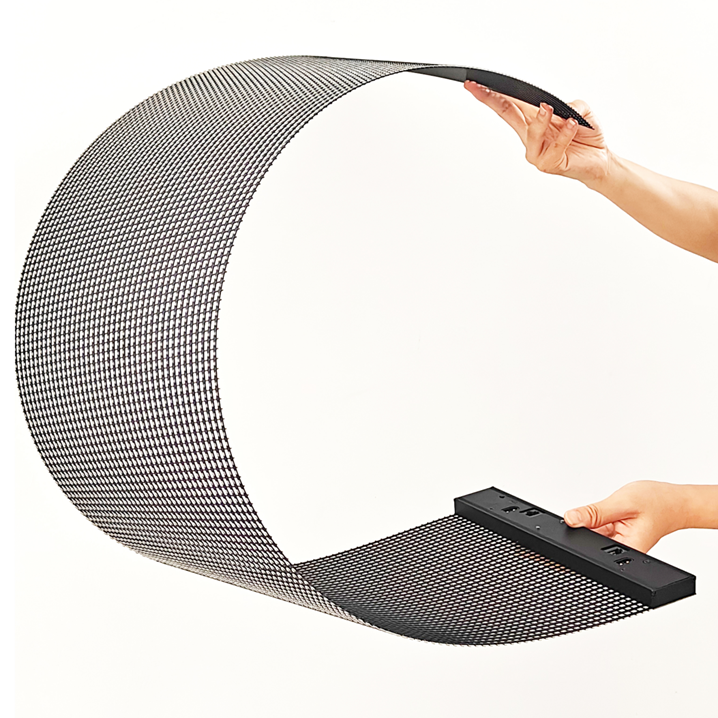 LED全息屏,创新采用无龙骨设计,一举打破传统屏幕结构束缚,屏体宛如灵动的画布,摆脱了厚重框架的限制,尽显简洁轻盈之美。它支持自由裁剪,能依据不同场景与需求,精准切割成理想尺寸,完美适配各类空间。更可弯曲塑造,轻松打造独特造型,为创意显示开辟无限可能,开启全息显示新体验。屏幕正反面可独立播放不同内容(如正面广告、背面信息查询),通过模块化拼接支持任意尺寸定制,适应弧形、圆柱形等异形载体。