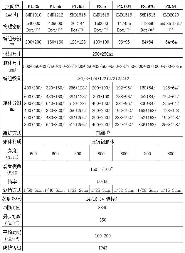 1000*500mm/1000*250mm/750*500mm/750*250mm/500*500mm/500*250mm六种标准尺寸可自由互拼,且箱体可拼直角,适配不同安装场景的大小需求。箱体轻薄化设计:箱体采用压铸铝材质,箱体厚度仅33mm(含模组)