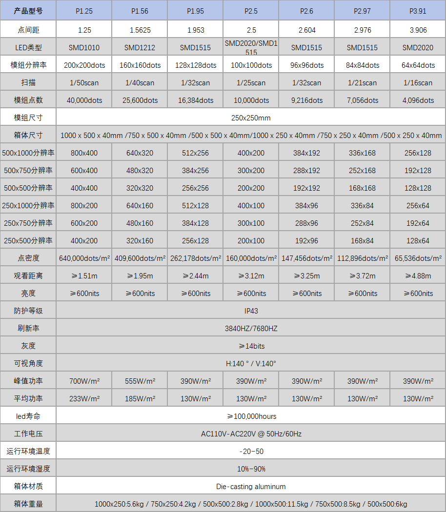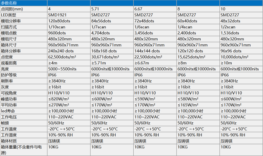 采用超轻压铸镁铝合金箱体,对比于传统压铸铝箱体运输更方便更便宜,安装更快速更简洁,适用于户外广告、舞台背景、体育场馆等高清展示场景。