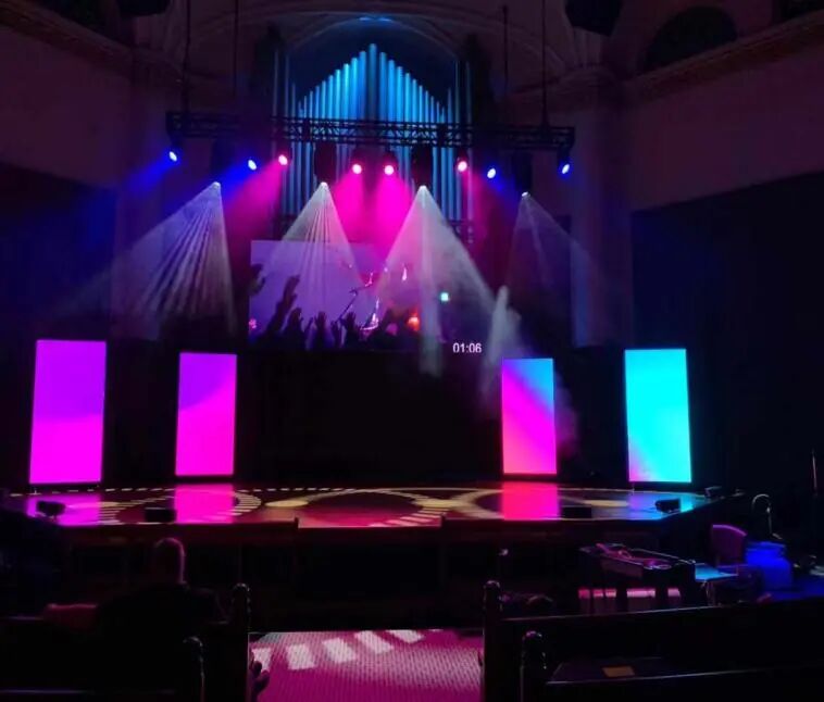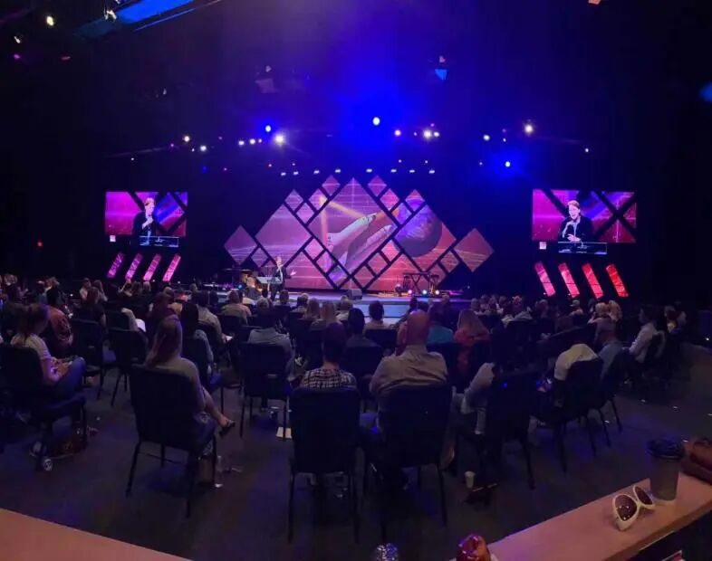④广电演播厅,新闻、晚会动态背景。同时满足摄像机无闪烁拍摄与高帧率体育集锦播放需求,符合广电级安全播出标准。
