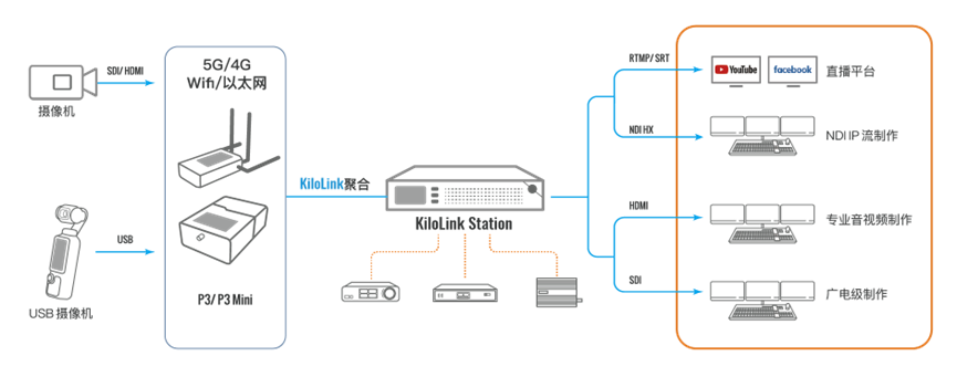 KiloLink Station是一款面向专业视听制作与远程协作的一体化硬件无线聚合接收与设备管理平台。设备预装 KiloLink Server Pro核心系统,将无线聚合接收、信号解码、协议输出与设备集中管理整合于单一硬件中,实现真正的即插即用、开机即用。