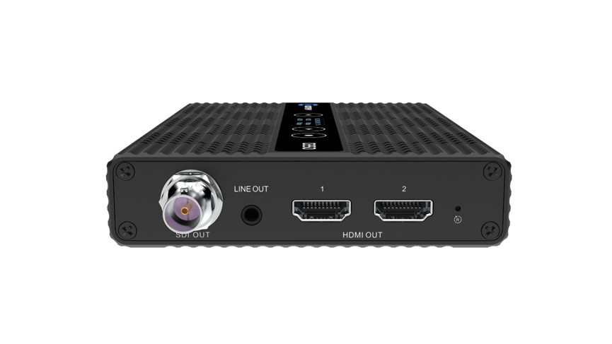 提供 4 路 3G-SDI(1080p60)与 1 路 4K HDMI 输出接口,支持多路同步解码输出至导播系统、显示终端或录制设备;HDMI 接口支持最高 4 画面拼接输出,满足集中监看与现场调度需求。
