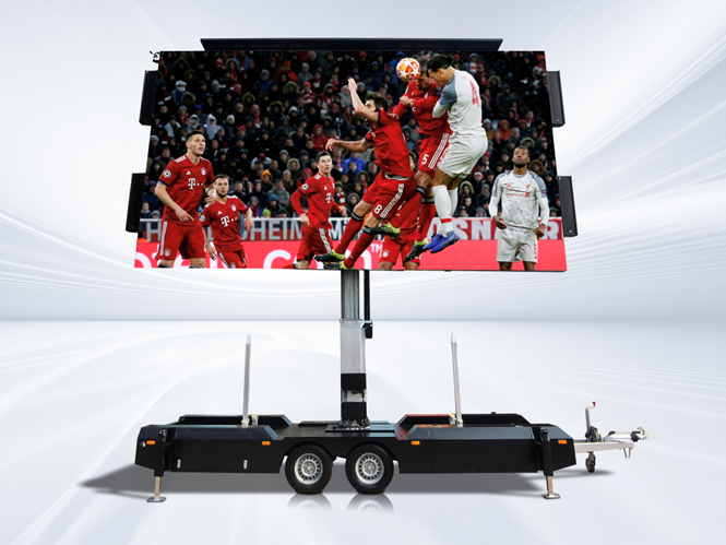 JCT公司精心打造了一款16㎡的移动体育赛事LED宣传拖车——EF16,专为满足国内外客户的个性化需求。这款拖车配备了5120mm*3200mm的超大尺寸屏幕,不仅能满足客户对超大画面的渴望,更在同类产品中独树一帜。