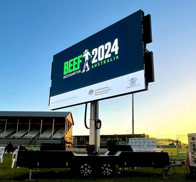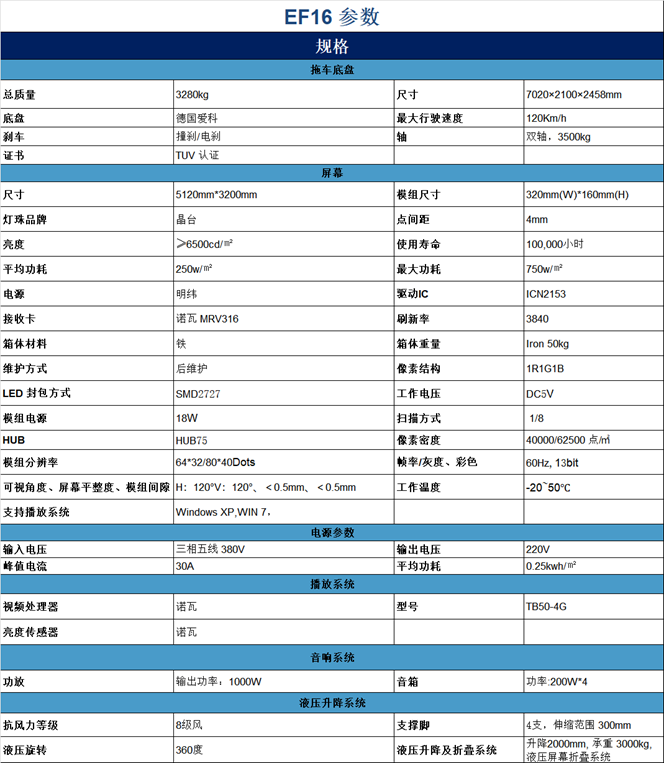 EF16型育赛事LED宣传拖车的设计新颖时尚,以黑色为主调,散发着强烈的科技感。它不仅集支撑、液压升降、旋转等多项功能于一体,更为客户和目标观众带来了震撼的感官盛宴。