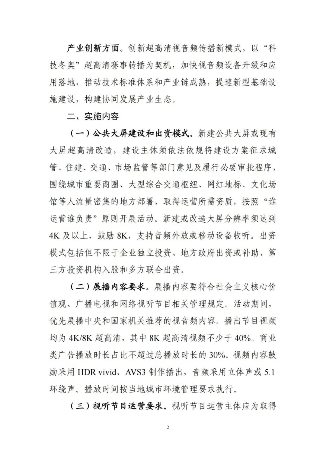 “百城千屏”活动以试点示范工程为引领,通过新建或引导改造国内大屏为4K/8K超高清大屏,丰富超高清视音频服务场景,加速推动超高清视音频在多方面的融合创新发展,催生新技术、新业态、新模式。其中城市重要商圈、大型综合交通枢纽、网红地标、文化场馆等都是典型的应用场景。