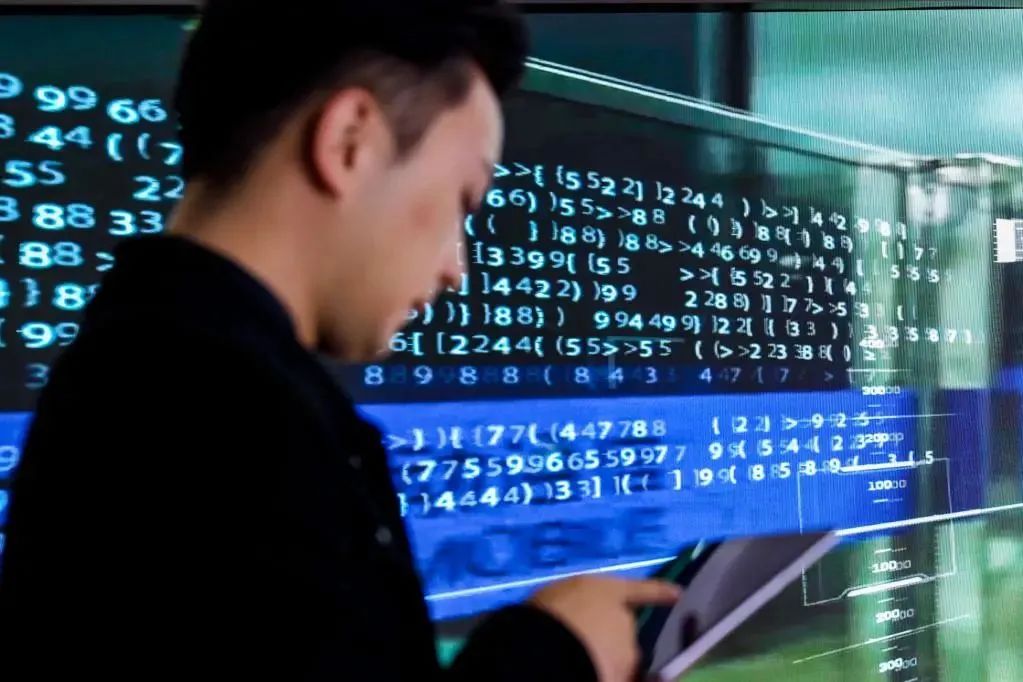 ▲工作人员在中国移动贵州数据中心内通过平板电脑操作大屏幕。
