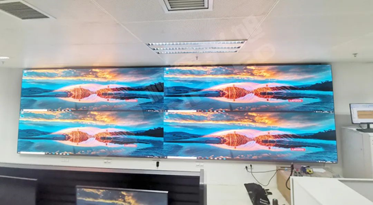 深圳宝安国际机场运维室项目采用视爵光旭旗下点间距为1.25的轻薄壁挂LED显示屏“壁画系列”,在运维室前墙壁上打造一块尺寸为宽6.6米,高1.85米的LED显示屏。