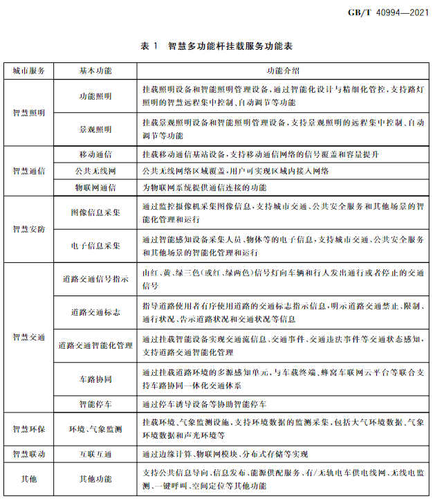 作为业内首个国家级标准,《规范》适用于城市道路、公路、高速路、广场、公园、庭院等公共设施的多功能杆,规定了杆体分类、一般要求、设计要求、布局要求、功能要求、安全要求以及运营服务要求等,填补了多功能杆在国家标准方面的空白,将进一步推动“多杆合一、一杆多用”,促进多功能杆行业发展,为构建物联感知网络、打造新型智慧城市的数字底座提供重要支撑。