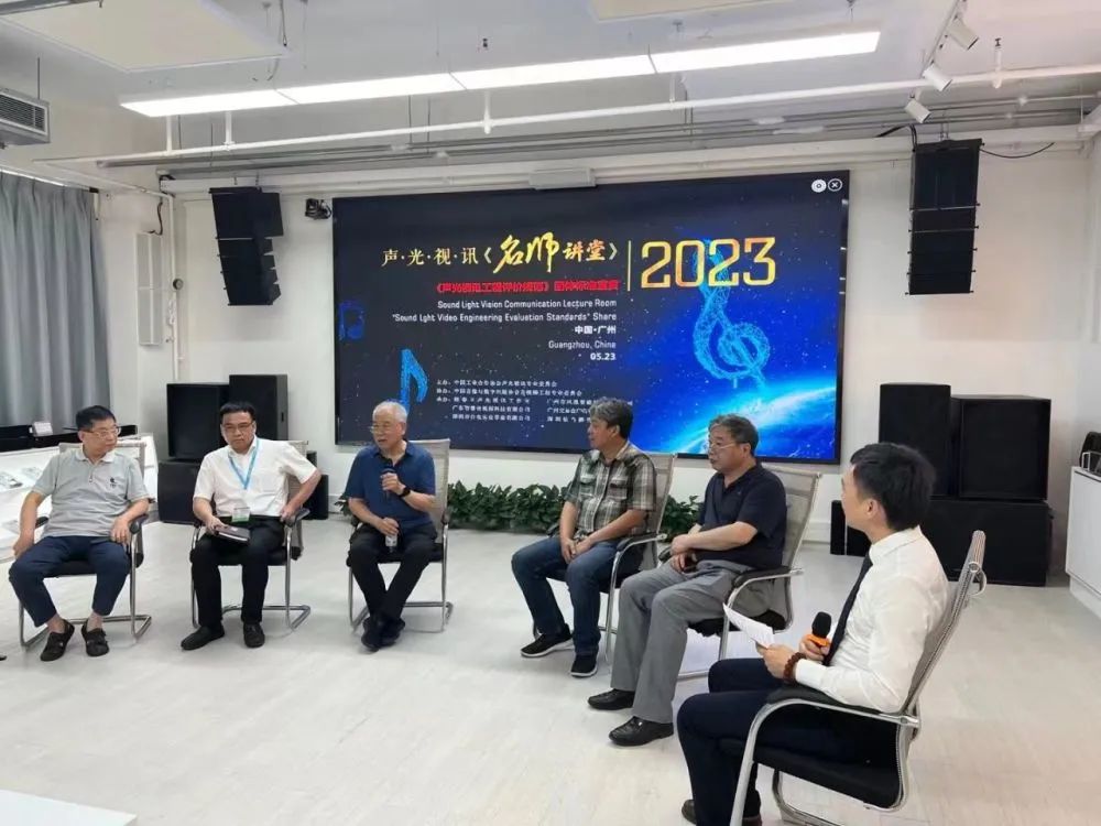 会议最后还举行了技术交流环节。邀请了隋春立、赵炳崑、董玉安、曾清良、李楠等专家老师上台,结合行业发展和个人立场,从不同角度对《声光视讯工程评价规范》团标的实施展开对话和探讨。气氛十分热烈,现场参会的来宾都大有启发收获。