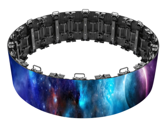 自主专利技术弧形锁,可内弧、外弧,或者半内半外,采用柔性 PCB 和可折弯底壳,弯曲自如,弧度最大可达 30 度,12 个箱体拼装一个圆,直径仅 1.9 米,高刷新、高灰度、高对比度,可随意搭建各种曲面造型。同时,于 2022 年 12 月成功入选《深圳市创新产品推广应用目录》,获得了深圳市相关政府部门的认可与肯定。