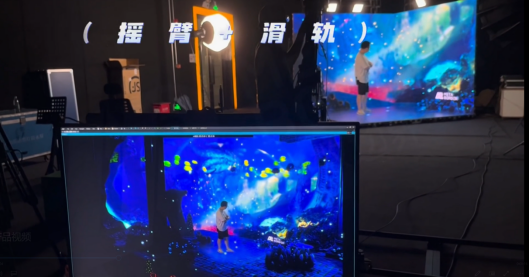 项目介绍:屏体结构为直径 24 米,高6 米的 270°巨型环幕影视棚,总像素点可达 2亿控制器使用卡莱特 Z6PRO-G2 配合 H10FN 光纤收发器,前端为定制 XR 渲染服务器 Pro,通过虚拟渲染引擎将虚拟画面经过控制器输出至 LED 显示屏,在巨型环幕棚里搭建实景,利用摄像机直接拍摄人、实景与 LED 背景,拍摄的画面可直接输出成片,大大缩减影视制作周期,实时出片。