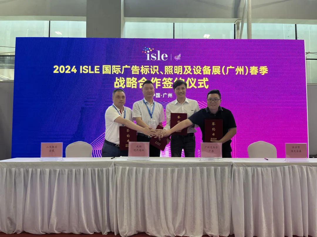 近日,广州交易会广告有限公司、成都现代德纳展览有限公司、山东雅昌会展服务有限公司、长沙市浩天会展服务有限公司在2023广告标识及照明展/空间展示展现场就2024 ISLE国际广告标识、照明及设备展(广州)达成战略合作。