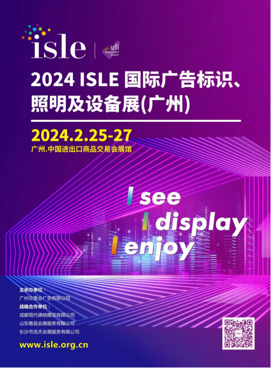 穗蓉济长四地一体,资源共享,凝心聚力,共同打造具影响力的ISLE 2024广告标识行业专业展览会。以采购需求为核心,最大化推动参展商和采购商之间商贸配对为目标,触达全国更多优质的供应商和买家,展示更全面的创新产品与技术,2024年2月25-27日,期待与您相约广州!