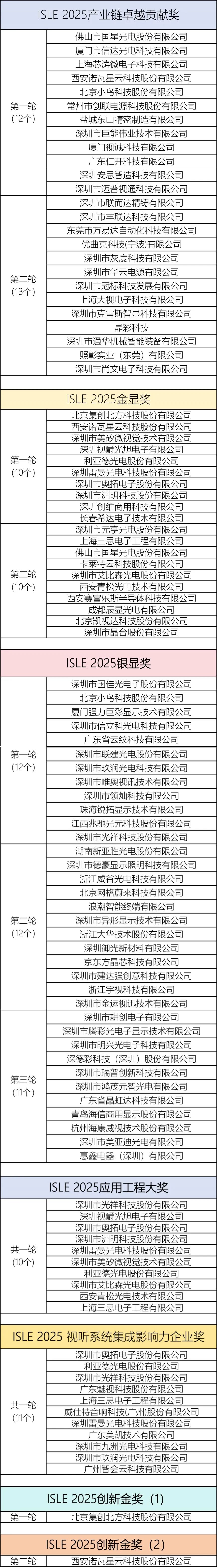 在本次展会系列活动中,ISLE组委会举办ISLE 2025优秀展示产品评选活动,奖项面向所有参展类别产品,包括“产业链卓越贡献奖”、“金显奖”、“银显奖”、“应用工程大奖”“视听系统集成影响力企业奖”“创新金奖”等。