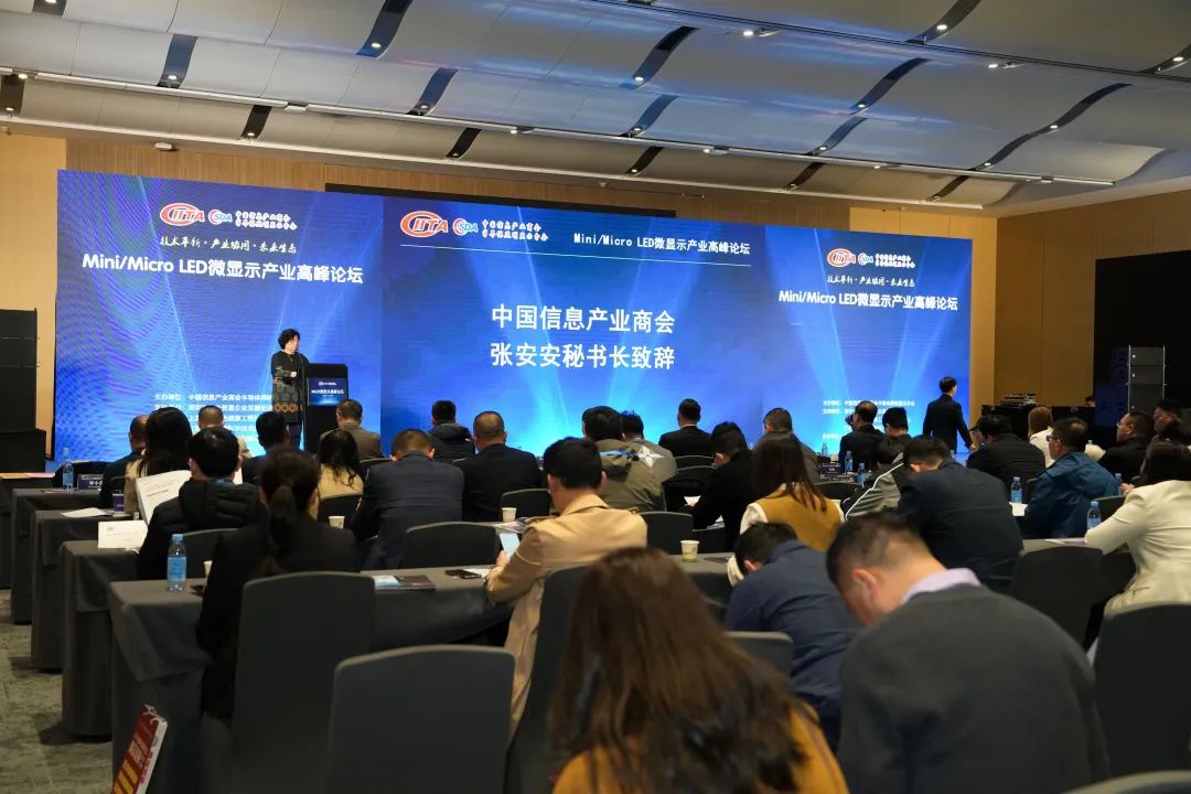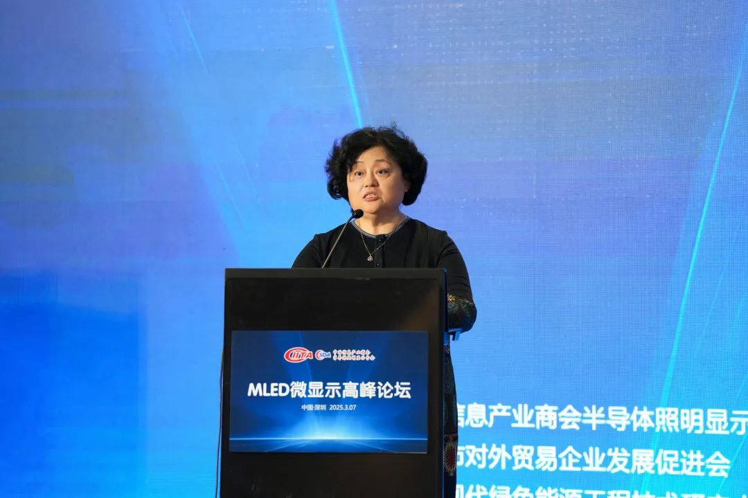 中国信息产业商会张安安秘书长在致辞中指出,数字经济时代,显示产业已成为科技领域的重要部分,深入日常生活。半导体照明显示无处不在,呈现信息世界的多彩。Mini/Micro LED凭借高亮度、低功耗、长寿命等优势,正引领全球显示产业进入新纪元。她强调,中国作为全球最大显示面板生产国,需加速技术研发与产业链整合,抢占产业制高点。中国信息产业商会将持续发挥桥梁作用,整合资源,推动产业协同创新。