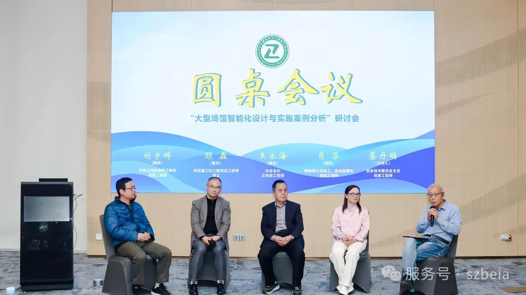 圆桌会议:协会会长王永海正高级、协会技术委员会主任蔡丹确高工、特区建工顾磊博士、博铭维肖芬总工、中建上海院数字城市设计院首席工程师-刘宇辉高工