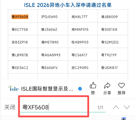 ISLE 2026将于3月5日-7日在深圳国际会展中心(宝安新馆)举行。恭喜以下车主通过异地小车入深的申请,期待与您相约,共谋发展。