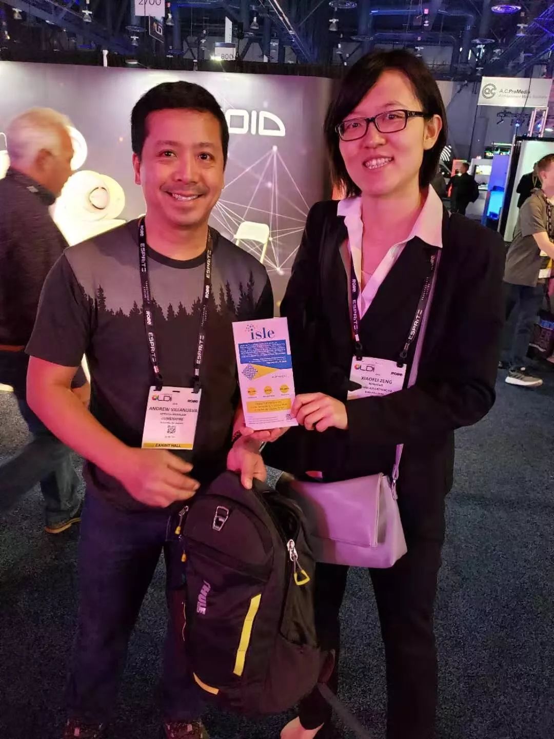 ISLE团队成员继续深入展览会,和现场多个行业协会及媒体进行交流。其中,美国一家知名激光显示协会和我们分享了他们专注激光显示技术在艺术,娱乐,教育等领域的运用,这与ISLE 2020 0 的展览方向不谋而合。双方就泛娱乐趋势,相关产业构成进行了面对面交流,初步达成合作意向。