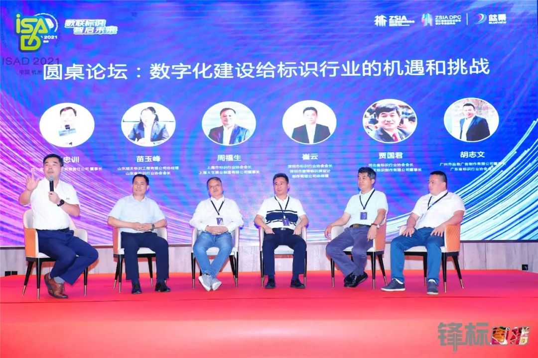 第二场圆桌论坛环节,由杭州中航标识设施工程有限公司总经理宋志伟,上海释途信息技术有限公司CMO樊绪东,中国广告协会标识与展示分会秘书长许勇,陕西科技大学设计与艺术学院视觉传达专业副教授魏天刚,武汉美斯奇广告有限公司总经理李威,五位嘉宾共同探讨“未来数智标识的探索与思考”。