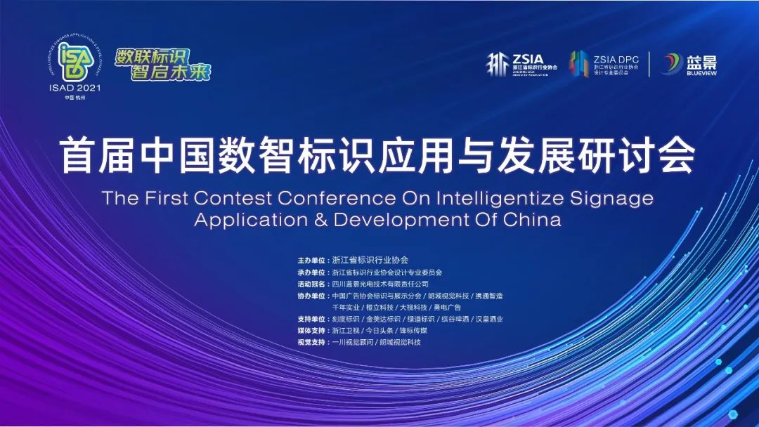 2021年7月24日,由浙江省标识行业协会主办、浙标协设计专委会承办,四川蓝景光电技术有限责任公司冠名的“首届中国数智标识应用与发展研讨会”在浙江杭州盛大启幕。