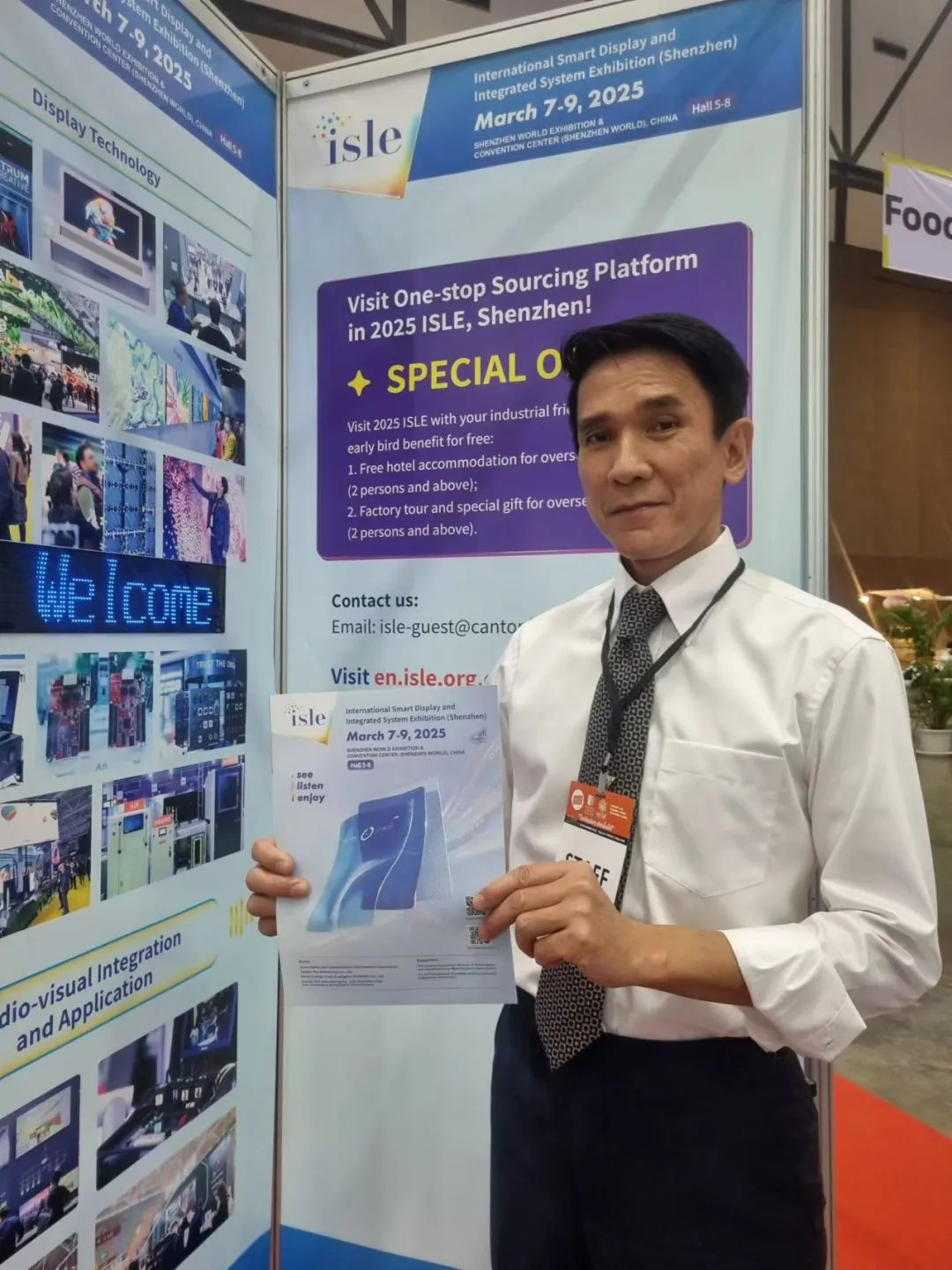 ISLE海外推广马不停蹄。推广团队抵达展会现场,与在场来自泰国、越南、老挝、新加坡、印度、马来西亚等采购商进行一对一交流。ISLE展位上的广告信息吸引了许多现场观众前来咨询,工作人员热情接待,积极介绍了ISLE 2025的最新规划及观展政策。