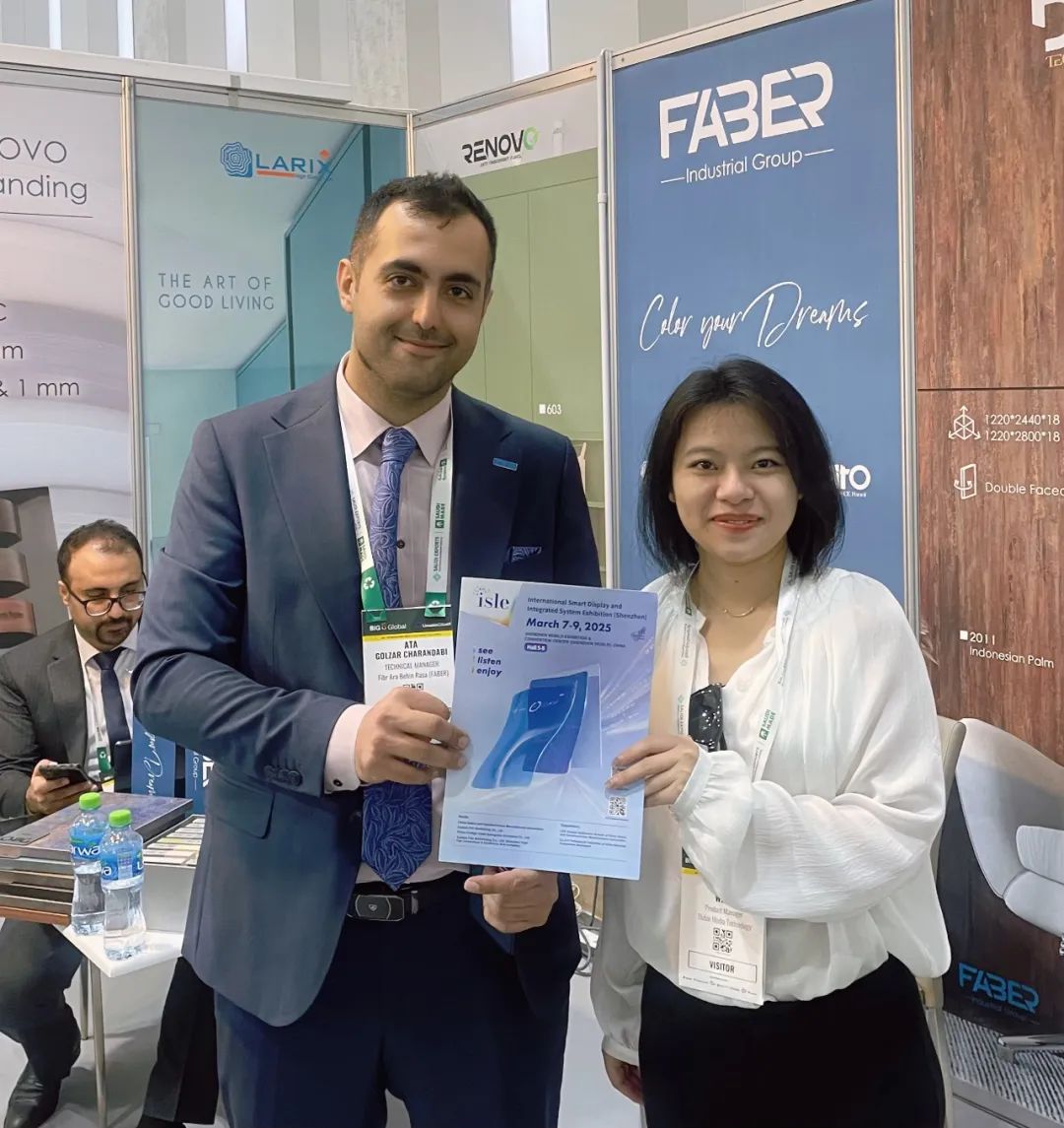 ISLE推广团队前往该展,与现场来自土耳其、印度、美国、俄罗斯、澳大利亚、德国、意大利、新加坡、法国的买家观众宣传推介ISLE 2025。现场采购商大多是建筑行业相关工程商、集成商、设计规划单位等,ISLE推广团队与他们逐一交流,了解行业风向,介绍ISLE 展会情况及相关企业案例产品。
