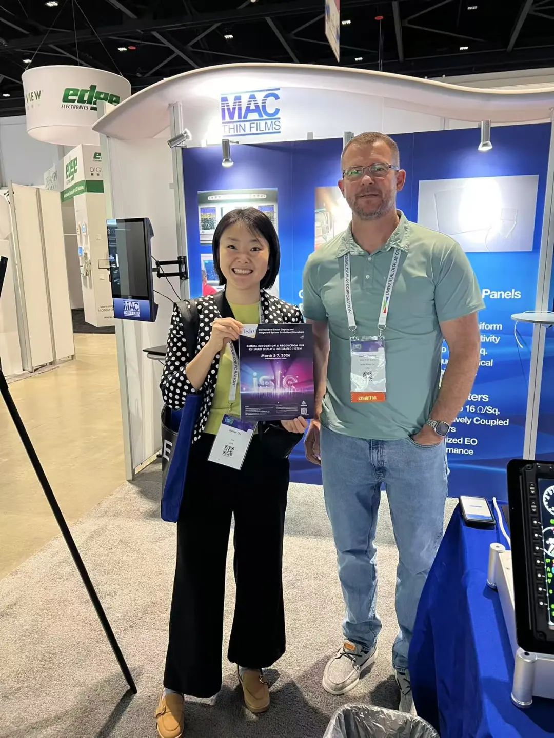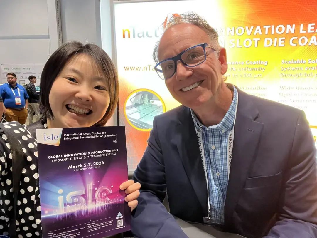 除了邀约买家观众,ISLE推广团队也与现场的参展企业进行行业交流,分享市场信息,在展会现场,我们也看到了许多中国领军企业展示了先进的显示技术和创新产品。